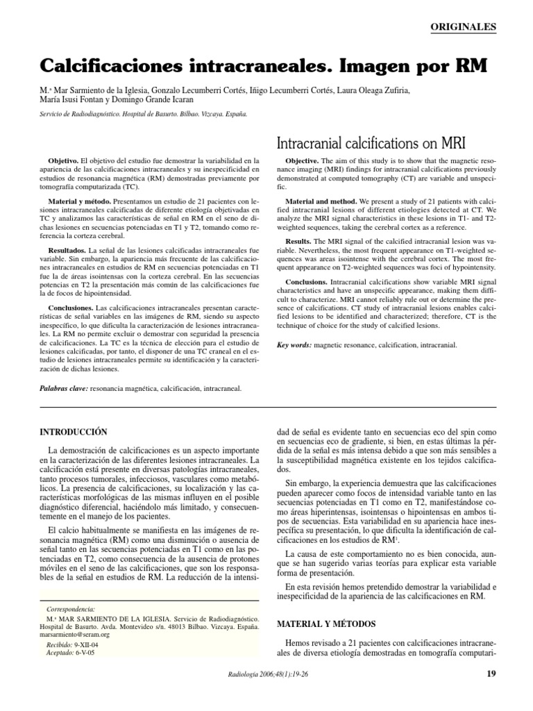 las sustancias paramagnéticas contenidas en las lesiones calcifi- herramienta diagnóstica complementaria a las exploraciones