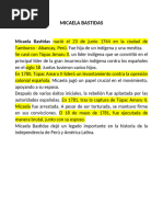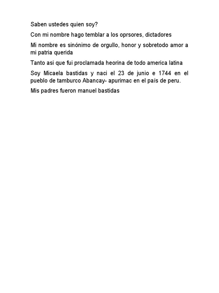 Soy Micaela bastidas y naci el 23 de junio e 1744 en el
