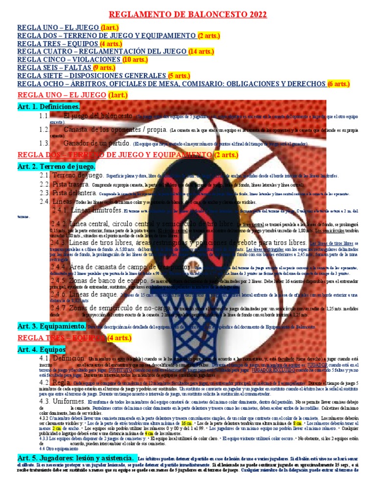 REGLAMENTO DE BALONCESTO 2022