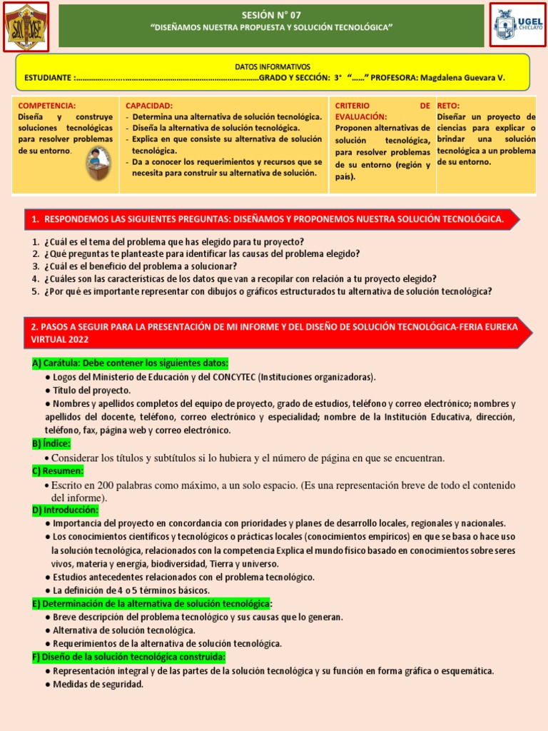 2. PASOS A SEGUIR PARA LA PRESENTACIÓN DE MI INFORME Y DEL DISEÑO DE SOLUCIÓN TECNOLÓGICA-FERIA EUREKA