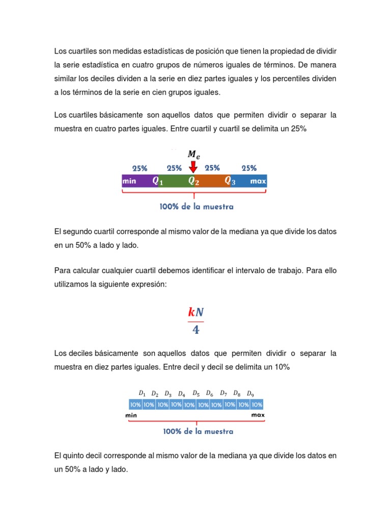 Los cuartiles son medidas estadísticas de posición que tienen la propiedad de dividir