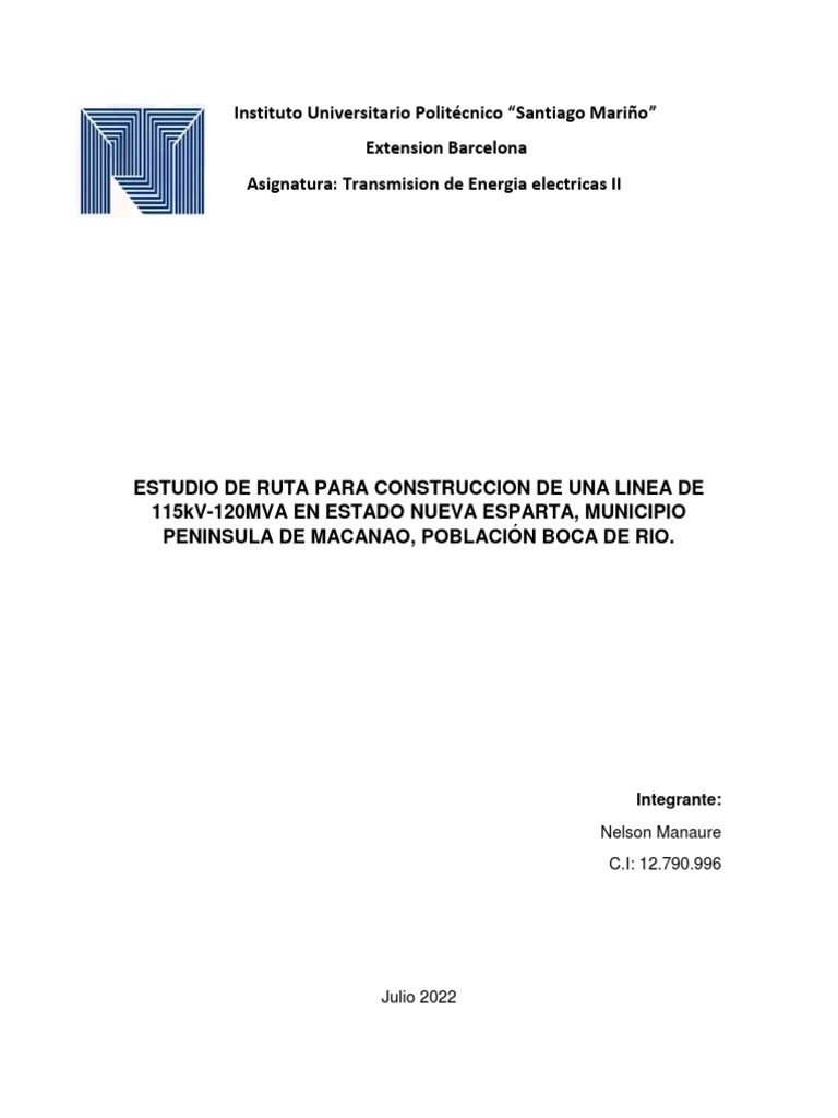 115kV-120MVA EN ESTADO NUEVA ESPARTA, MUNICIPIO