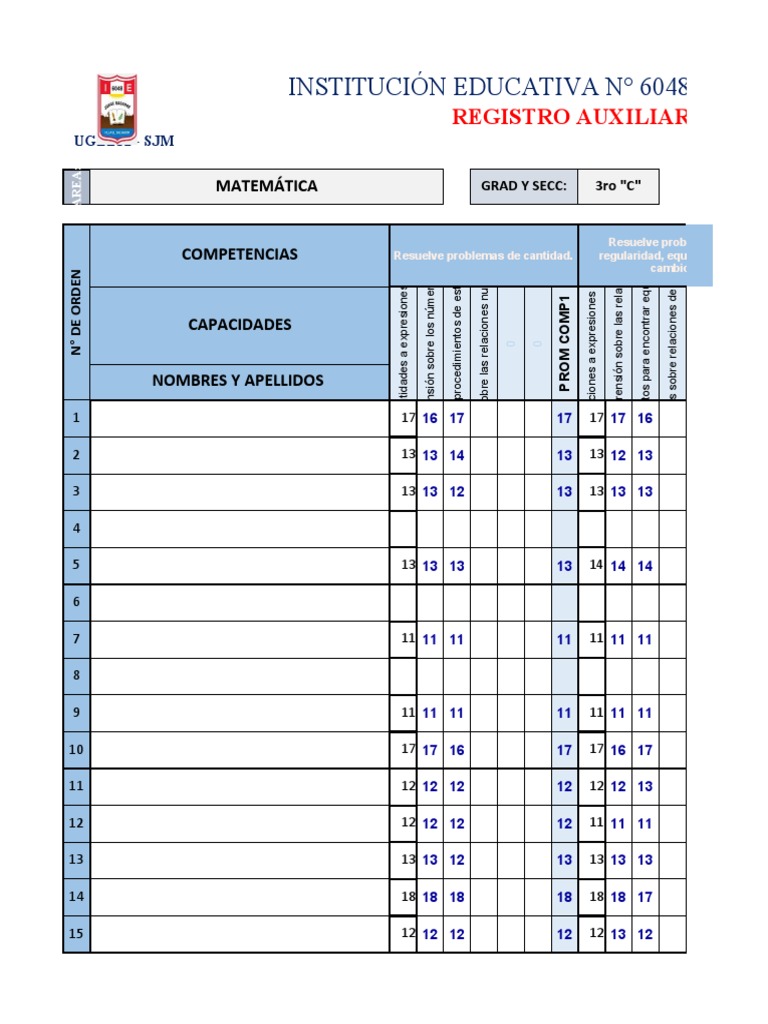 MATEMÁTICA GRADO Y SECC: 3ro "C"