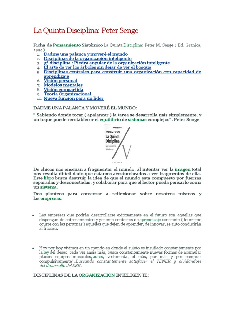 Ficha de Pensamiento Sistémico La Quinta Disciplina: Peter M. Senge ( Ed. Granica,