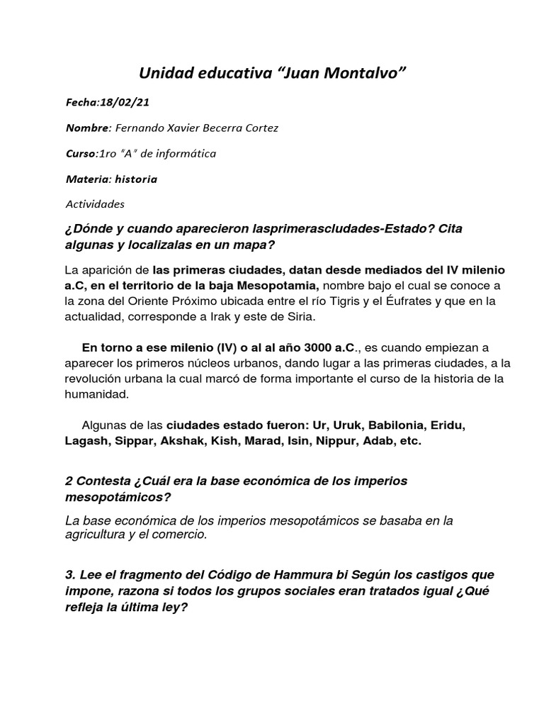 3. Lee el fragmento del Código de Hammura bi Según los castigos que