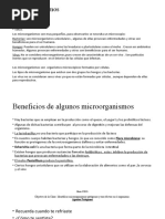 1. ¿Qué beneficios generan los microorganismos en la vida de los seres humanos?