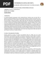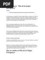 Margarita Durn Estrag* Universidad Catlica de Asuncin, Paraguay Resumen: La historia oficial del Paraguay est llena de hroes militares. Sus nombres estn grabados en calles, avenidas, plazas, escuelas, clubes deportivos, comercios, hospitales, distritos, pueblos y ciudades del pas. Las gestas guerreras llegaron a calar muy hondo en la identidad nacional, tanto que para el imaginario colectivo hroe es sinnimo de soldado con fusil al hombro, gorra militar y bandera tricolor en mano. Si en esa historia queda poco lugar para hroes civiles, menos espacio tienen las heronas, mujeres que supieron acrisolar virtudes en la cotidianidad del hogar, en orfanatos, escuelas, hospitales, chacras y actividades varias. Es el caso de Carlota Ayala (1853-1951) ms conocida como Carlota Palmerola vecina del barrio Manor (Recoleta), que a la edad de 14 aos le toc peregrinar como residenta durante la Guerra Grande (1865 -1870). Su vida fue un ejemplo de trabajo, generosidad, austeridad y valor en la adversidad. Palabras claves: Carlota Palmerola; Kua Paraguay; Siglo XIX.