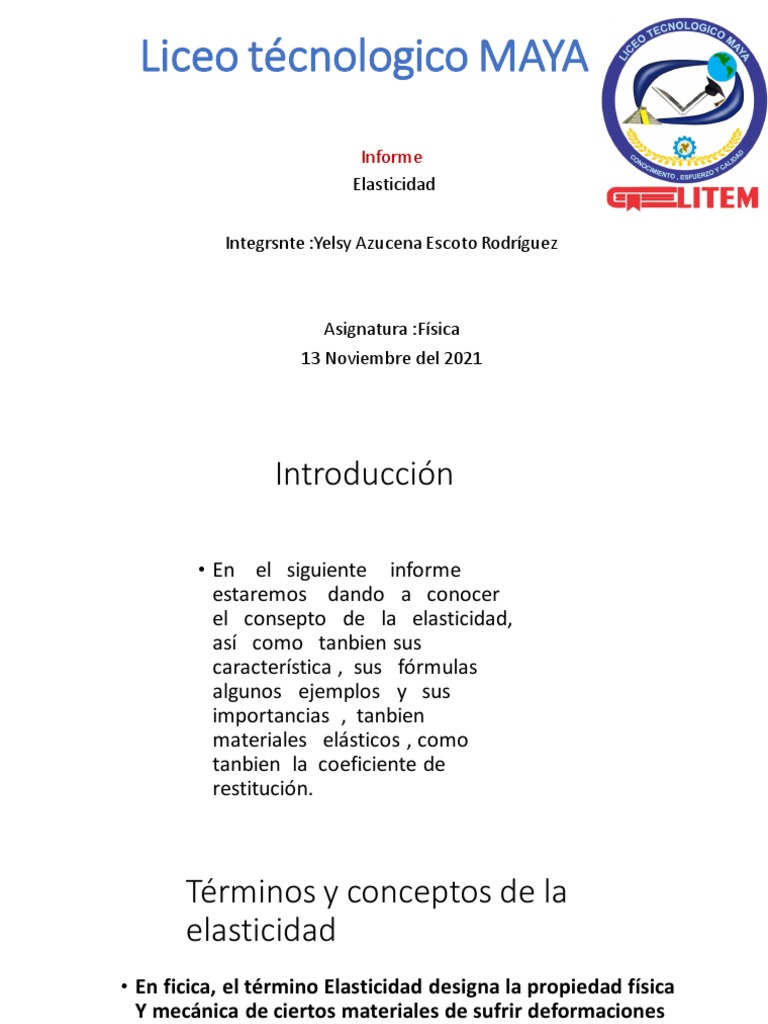 cumple lo que es la ley de Hooke y una vez que cese la aplicación de la fuerza volverá a su forma