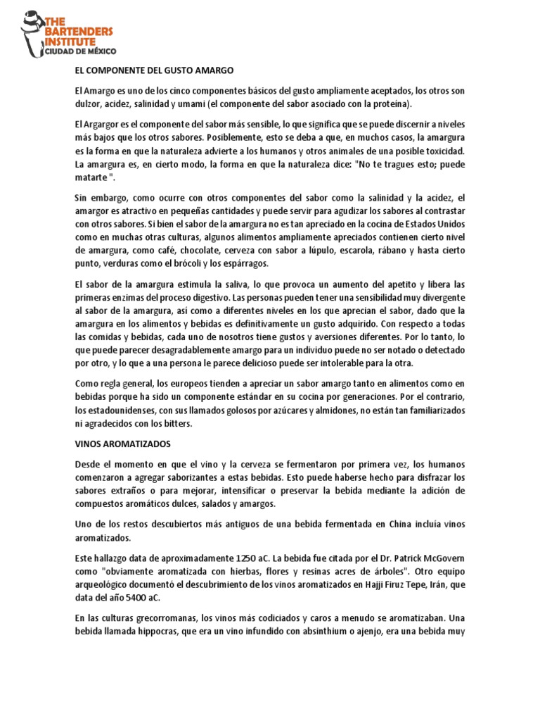 al sabor de la amargura, así como a diferentes niveles en los que aprecian el sabor, dado que la