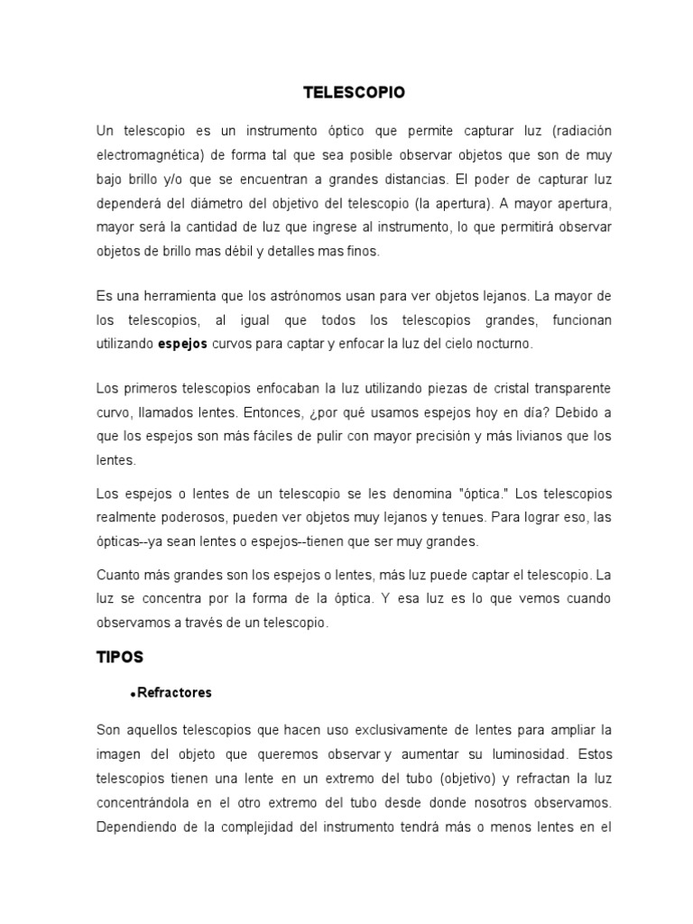 telescopios constan de un tubo abierto por uno de sus extremos, parcialmente