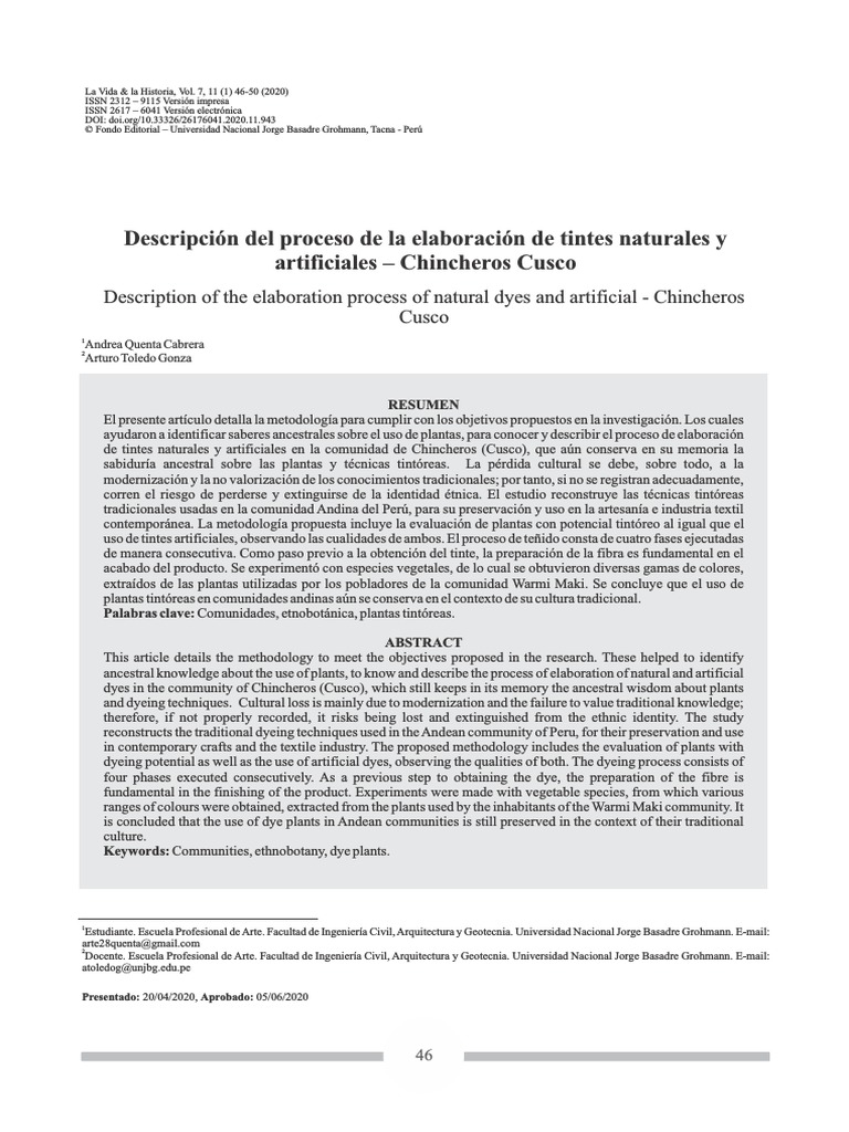 de tintes naturales y artificiales en la comunidad de Chincheros (Cusco), que aún conserva en su memoria la
