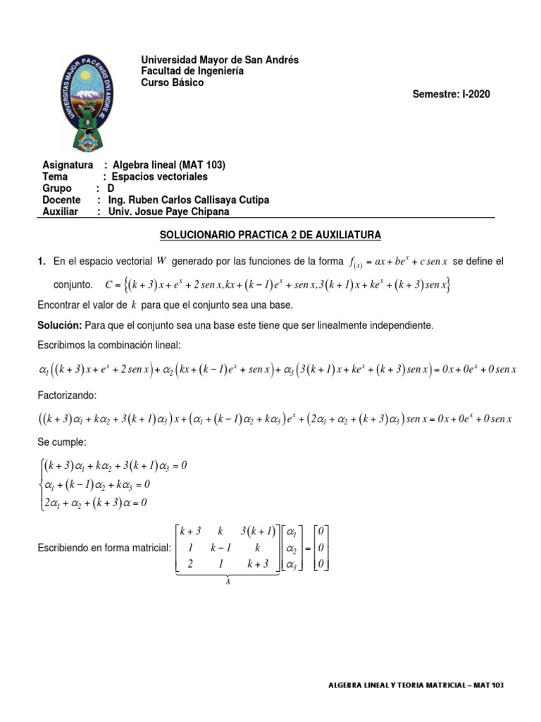 ALGEBRA LINEAL Y TEORIA MATRICIAL – MAT 103