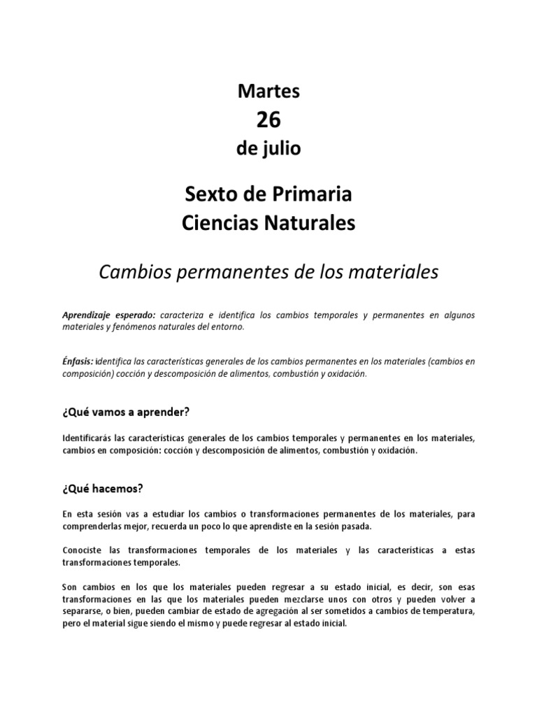 En esta sesión vas a estudiar los cambios o transformaciones permanentes de los materiales, para