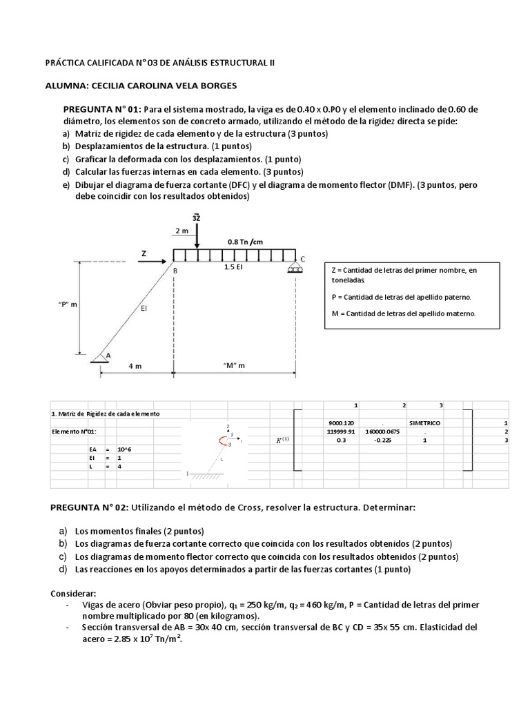 a) Matriz de rigidez de cada elemento y de la estructura (3 puntos)