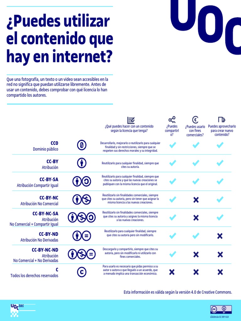 Esta información es válida según la versión 4.0 de Creative Commons.