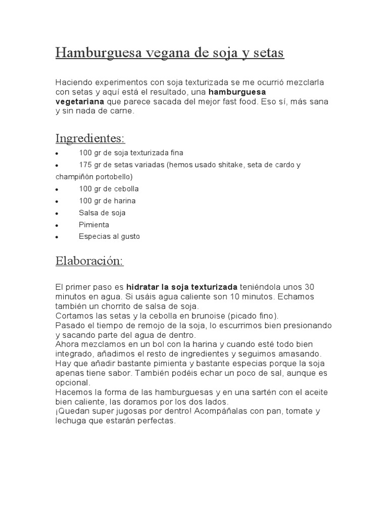 Hamburguesa vegana de soja y setas