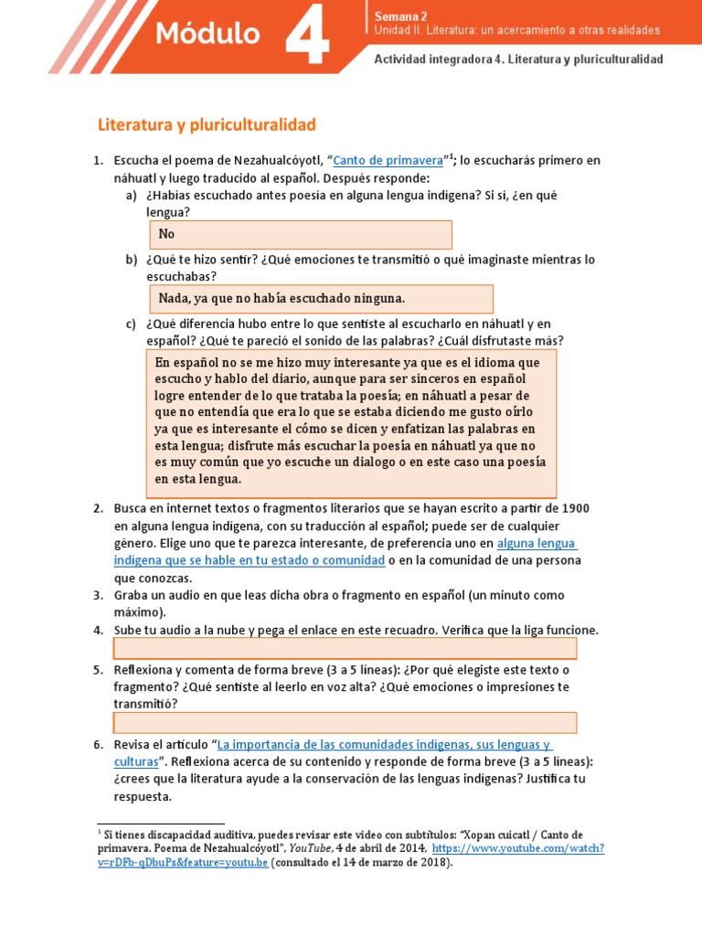 1. Escucha el poema de Nezahualcóyotl, “Canto de primavera”1; lo escucharás primero en