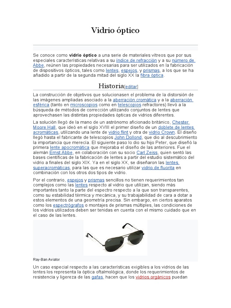 Se conoce como vidrio óptico a una serie de materiales vítreos que por sus