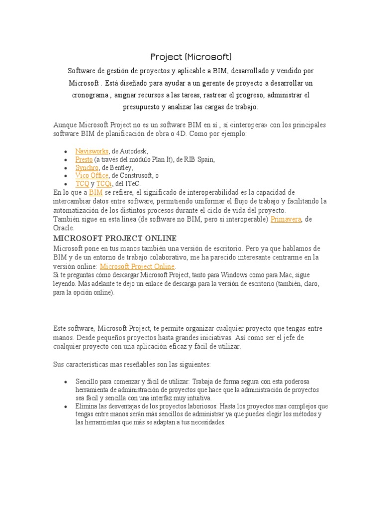 Aunque Microsoft Project no es un software BIM en sí , sí «interopera» con los principales