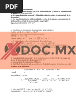 b) : Los 3 moles se diluyen hasta 10 litros ⇒ M = = = 0,3 Molar