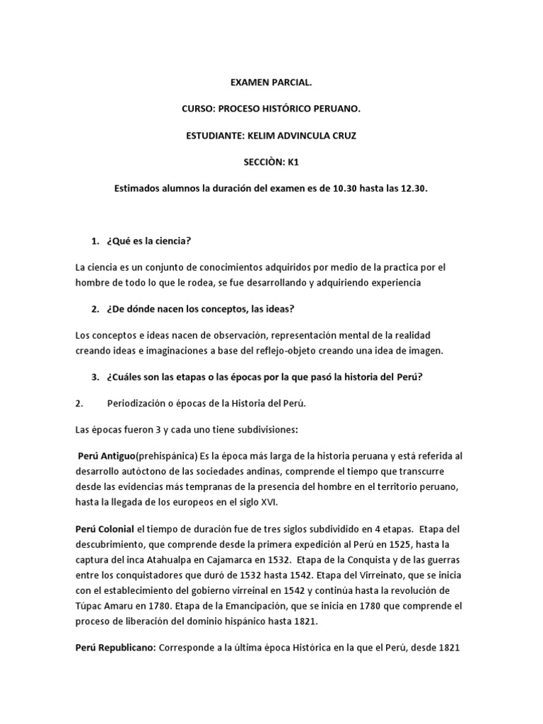 3. ¿Cuáles son las etapas o las épocas por la que pasó la historia del Perú?