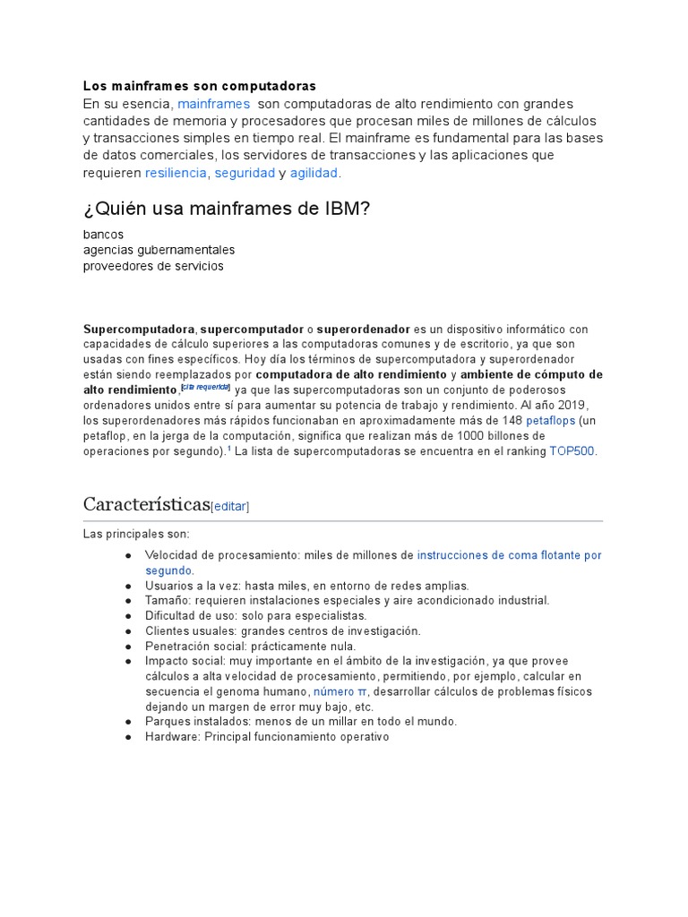 alto rendimiento,[cita requerida] ya que las supercomputadoras son un conjunto de poderosos