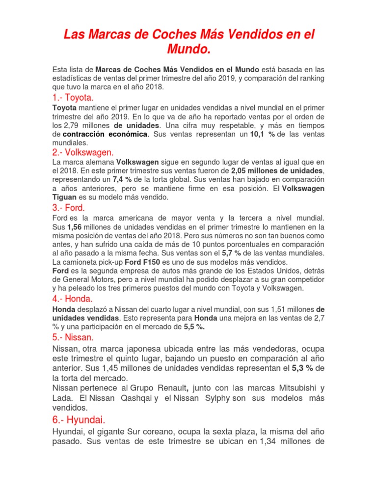 Esta lista de Marcas de Coches Más Vendidos en el Mundo está basada en las