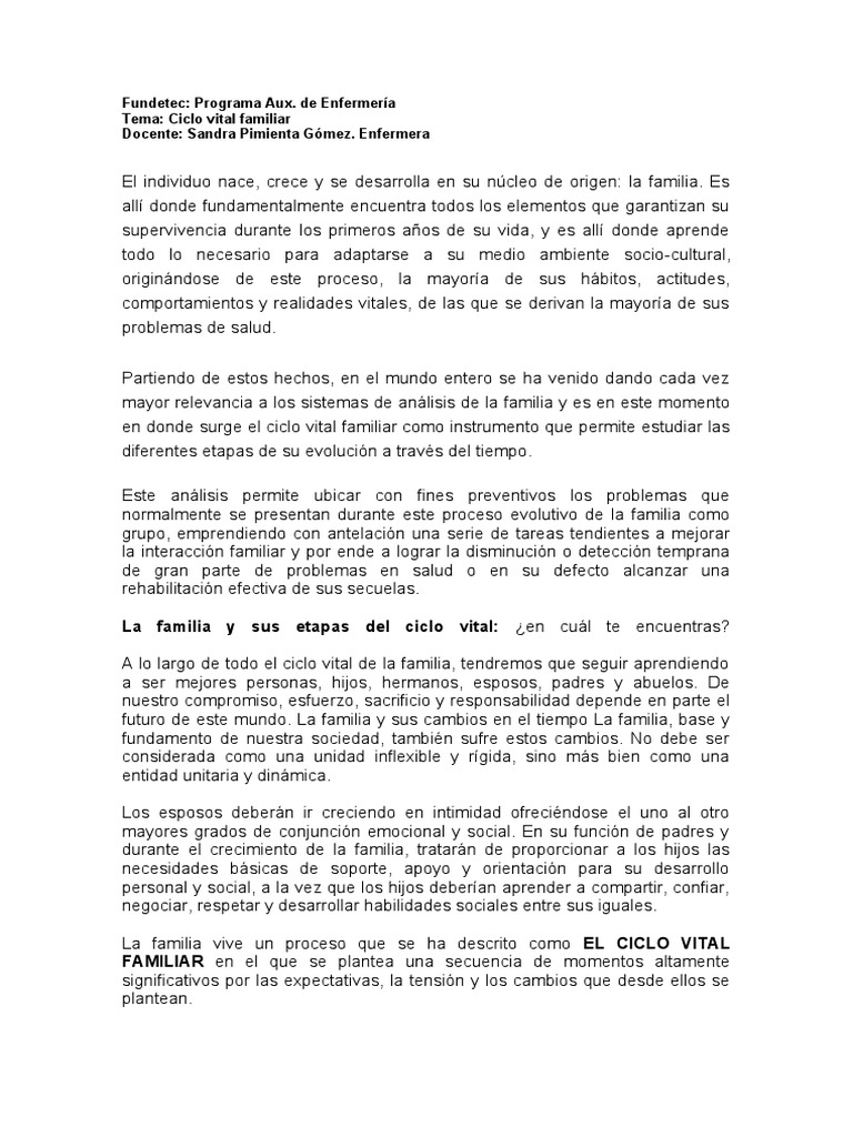 Tema: Ciclo vital familiar
