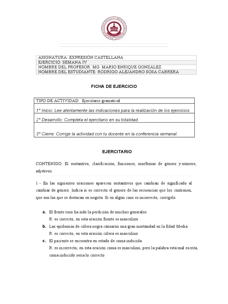 TIPO DE ACTIVIDAD: Ejercitario gramatical