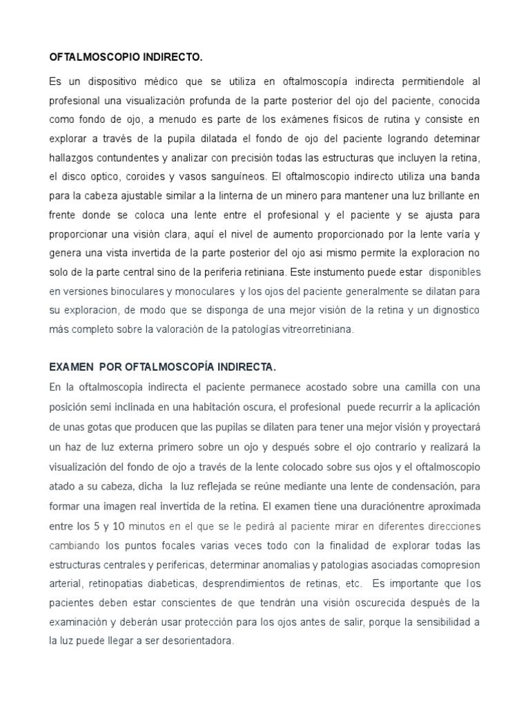 Una exploración con el oftalmoscopio indirecto sea mono o binocular puede