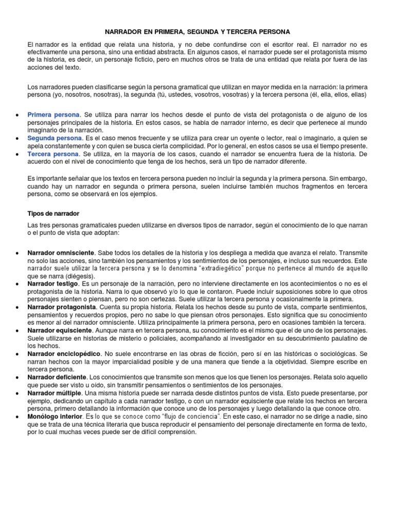 NARRADOR EN PRIMERA, SEGUNDA Y TERCERA PERSONA