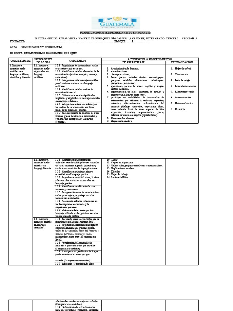 PLANIFICACION NIVEL PRIMARIA CICLO ESCOLAR 2,018