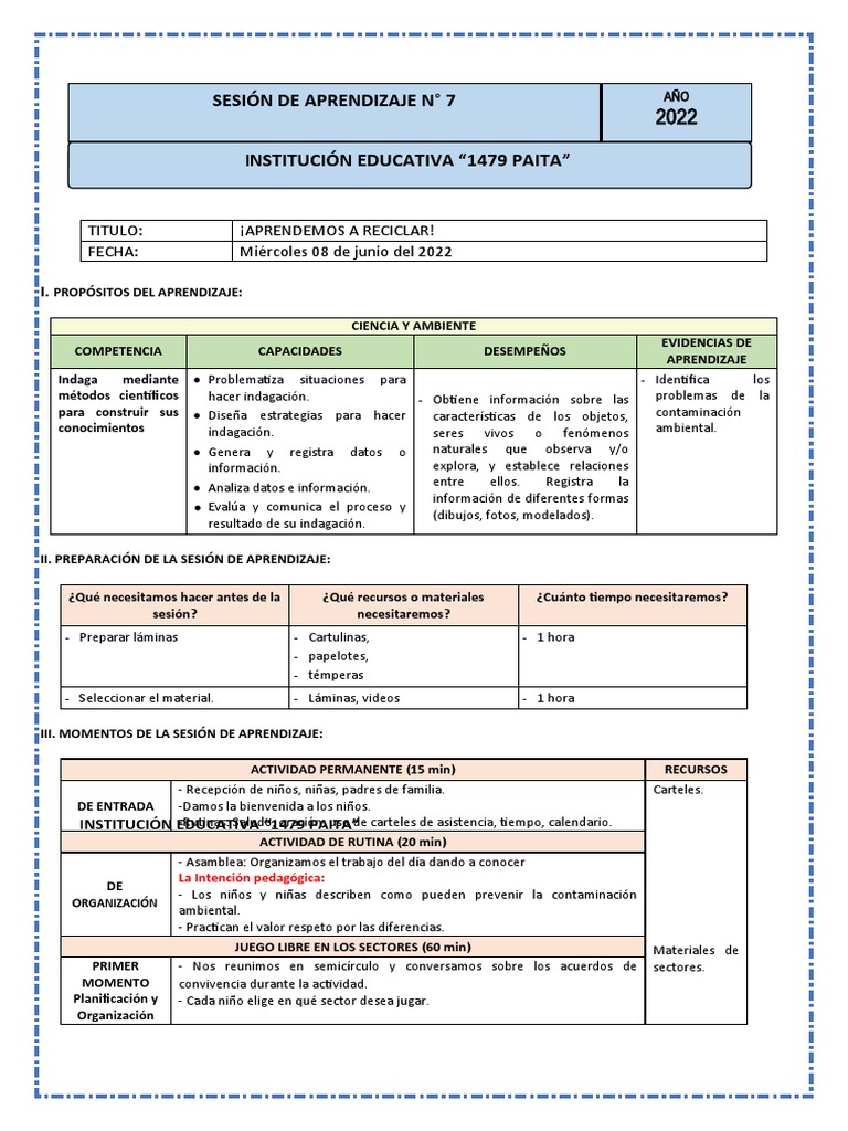 SESIÓN DE APRENDIZAJE N° 7 AÑO