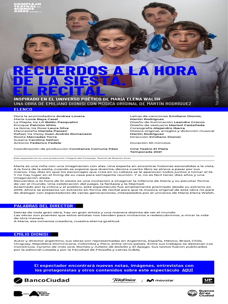 Este espectáculo es una producción integral del Complejo Teatral de Buenos Aires.