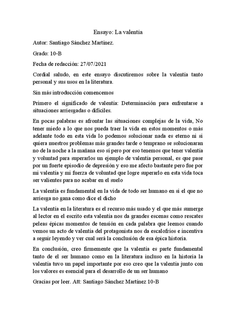 Cordial saludo, en este ensayo discutiremos sobre la valentía tanto