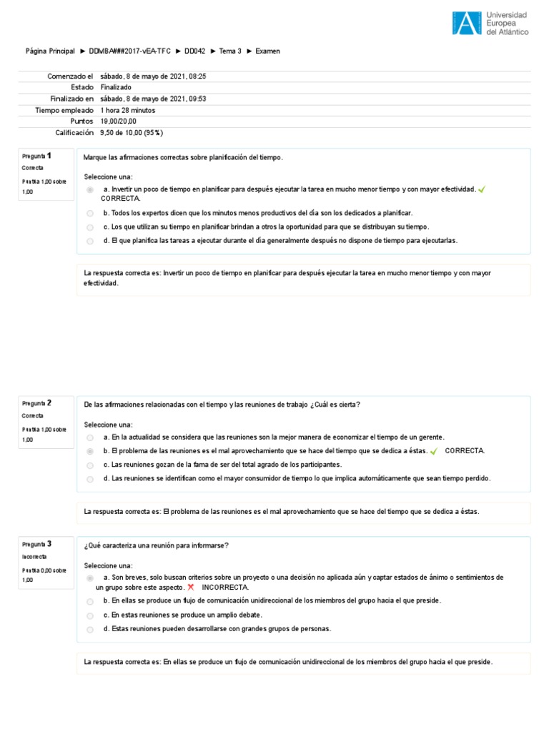 Pregunta 20 Identifica cuándo un directivo gestiona con calidad su tiempo de trabajo.