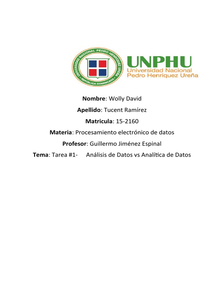 Tema: Tarea #1- Análisis de Datos vs Analítica de Datos