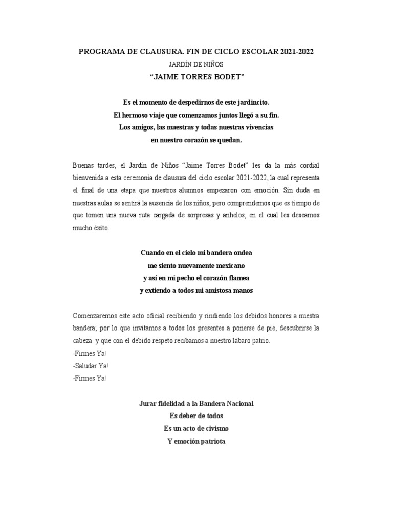 bienvenida a esta ceremonia de clausura del ciclo escolar 2021-2022, la cual representa