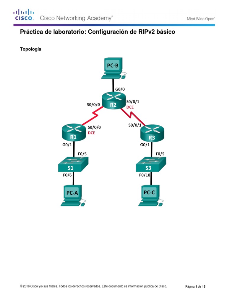En esta práctica de laboratorio, configurará la topología de la red con routing RIPv2, deshabilitará la