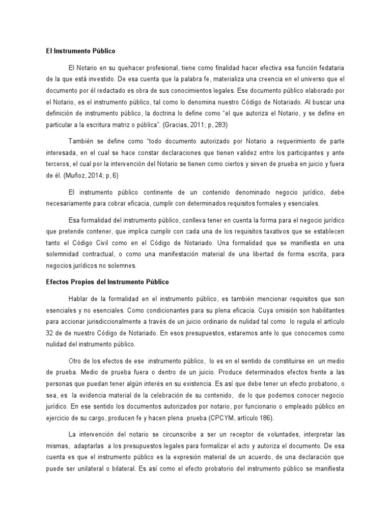 el Notario, es el instrumento público, tal como lo denomina nuestro Código de Notariado. Al buscar una