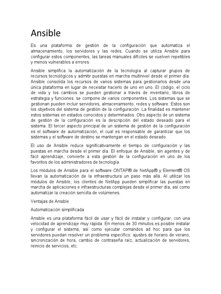 almacenamiento, los servidores y las redes. Cuando se utiliza Ansible para