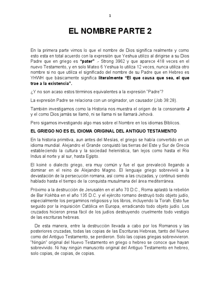 Pero sigamos investigando algo mas sobre el Nombre en los idiomas Bíblicos.