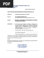 Con fecha 16 de febrero del 2022 se le hace entrega al supervisor la carta