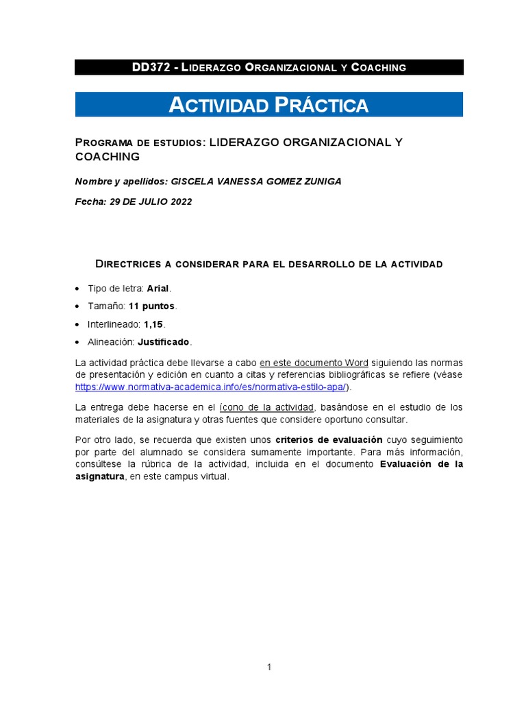 DD372 - LIDERAZGO ORGANIZACIONAL Y COACHING
