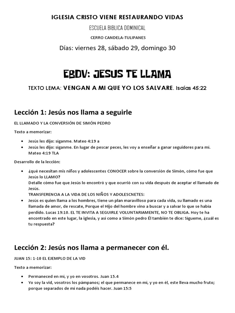 • Jesús te llama, quiere que permanezcan en él, y te promete regresar por ti para llevarte a vivir con