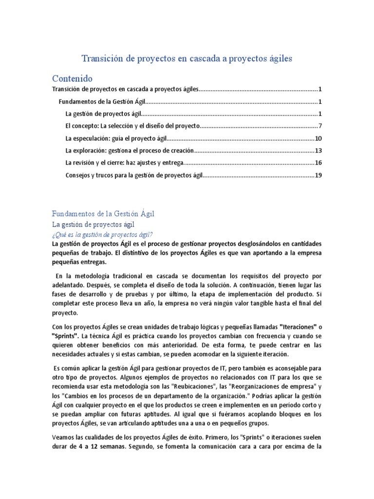 Transición de proyectos en cascada a proyectos ágiles.....................................................................1