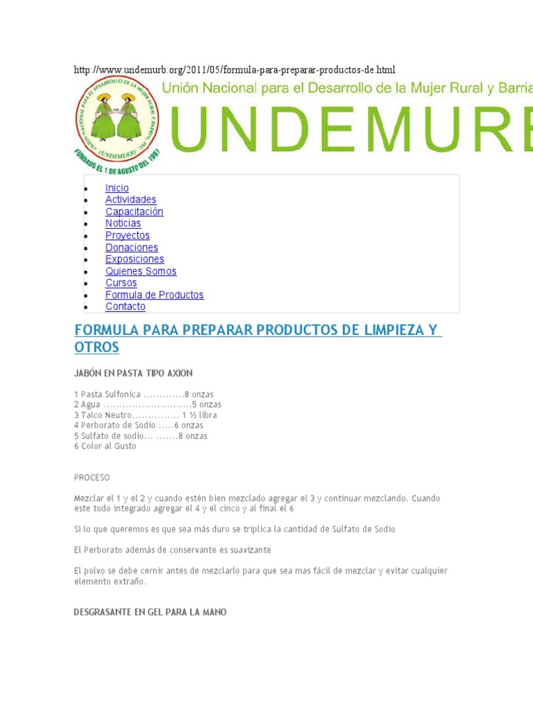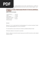 FORMULA PARA PREPARAR PRODUCTOS DE LIMPIEZA Y