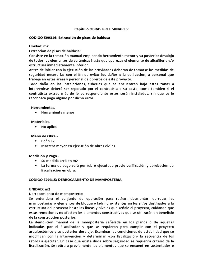 de acuerdo a las modificaciones planteadas en el proyecto y que comprende el picado
