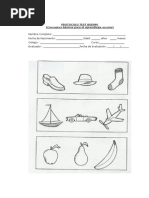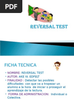 Este documento presenta un formato para administrar una prueba de reversión que evalúa la habilidad de un individuo para identificar figuras idénticas y no idénticas. El formato incluye espacios para registrar la fecha del examen, los datos del paciente, el número total de figuras idénticas y no idénticas correctamente identificadas, y el puntaje resultante.