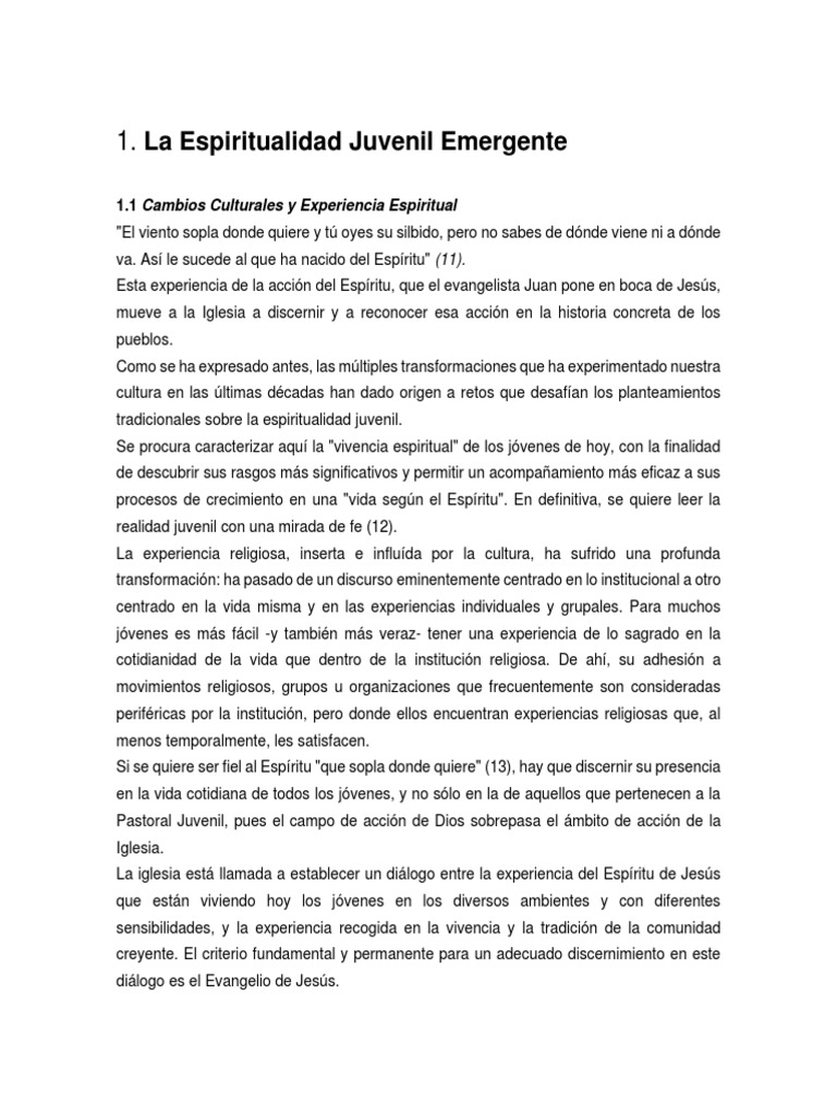 directo a los jóvenes, de la descripción de la espiritualidad juvenil emergente que va